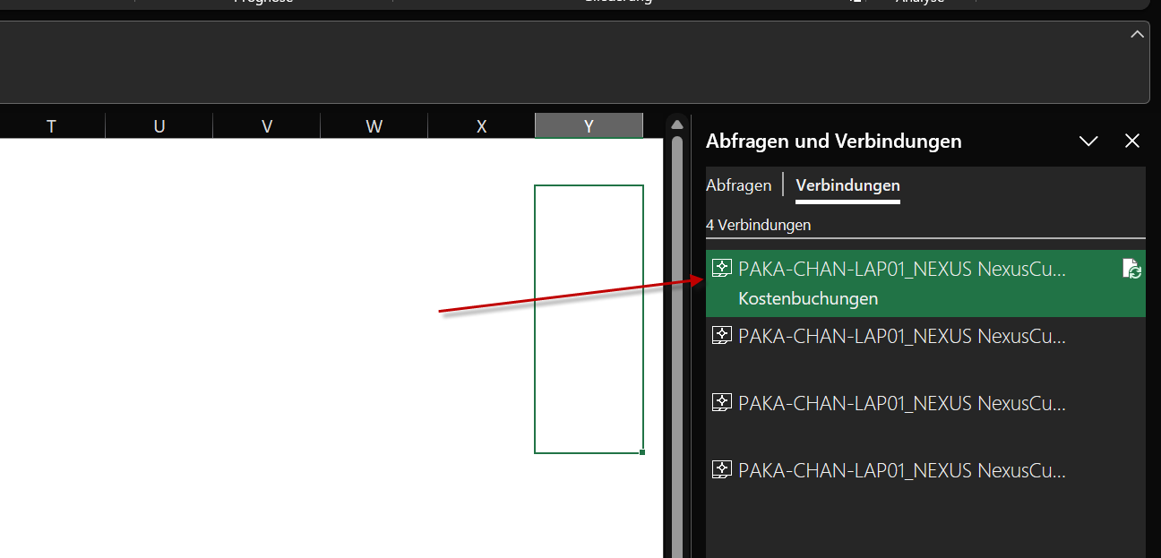 Wenn Abfragen und Verbindungen geöffnet wurde, dann erscheinen auf der Rechtenseite alle Verbindungen welche mit diesem Excel hergestellt wurden. Diese Verbindungen müssen jetzt alle angepasst werden. Dies erfolgt via Doppelklick auf die jeweilige Verbindung.