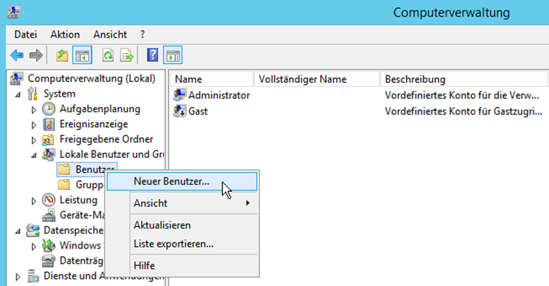 User Account auf dem Server anlegen |