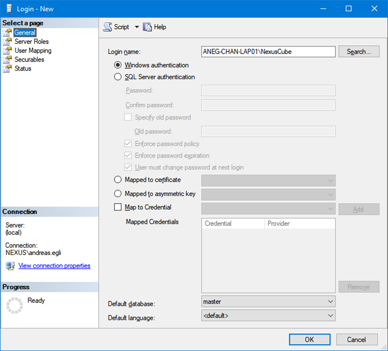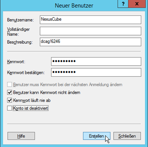 - Es braucht einen Lokalen-Account auf dem Server (NexusCube // dcag!6246)