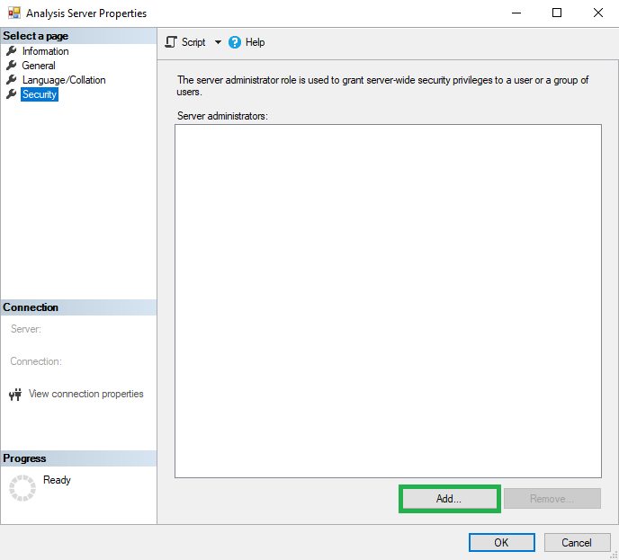 Admin Account auf dem SSAS hinterlegen |