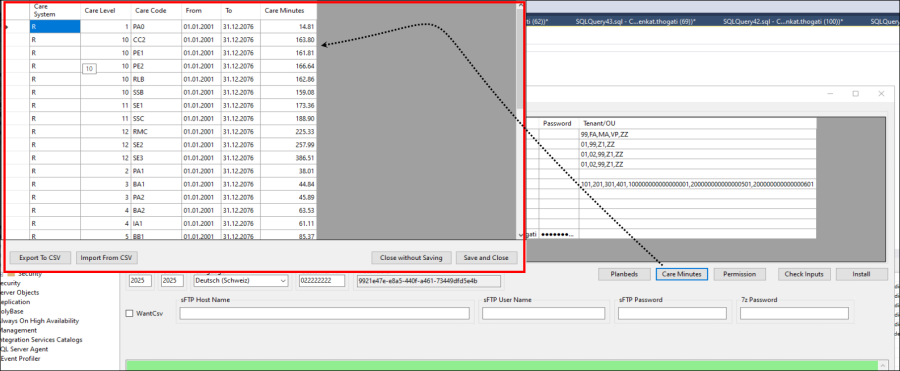 Wenn Sie auf die Schaltfläche Exportieren klicken, wird eine CSV-Datei mit allen konfigurierten Pflegeminuten erstellt.