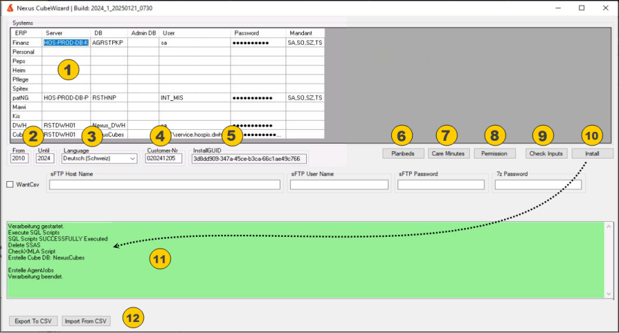 | Mandant | Die Mandanten (kommagetrennt), wenn Sie alle Mandate im Data Warehouse haben wollen, können Sie ein * eingeben. Wenn Sie auf Installation klicken, wird das * dann durch die Mandanten ersetzt. |