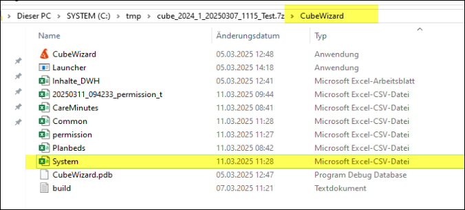 Die Datei wird im Ordner CubeWizard unter dem Namen System gespeichert.