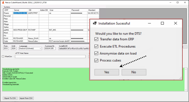 Nach der Auswahl klicken Sie auf "Ja" und die Datenübertragung, das Laden und die Verarbeitung der Würfel beginnt.