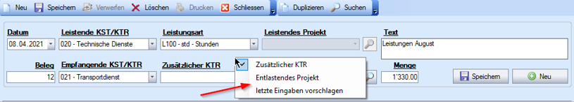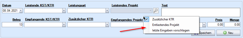 Leistendes Projekt | Entlastendes Projekt Hinweis: Dieses Feld ist je nach Einstellungen zur Eingabe aktiv oder nicht. Siehe Kontextmenu weiter unten. |
