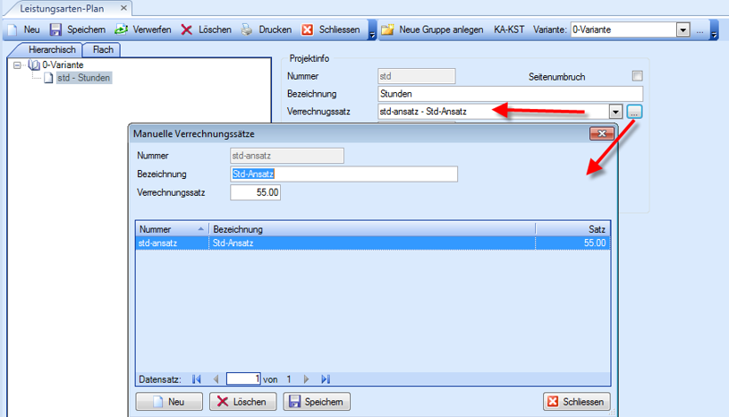 Stammdaten Betriebsbuchhaltung → Leistungsartenplan