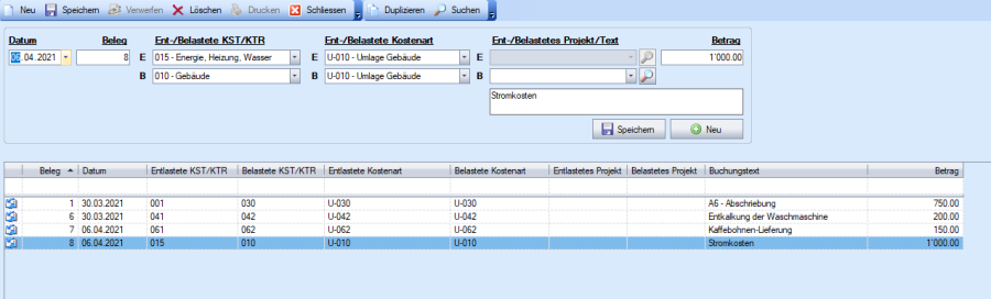 Betrag | Betrag, welcher auf die dazugehörige Kostenstelle/den Kostenträger in der Spalte "Belastet" umgelegt wurde. | ||||||||