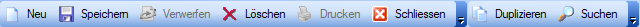 Suchen | Gleiche Funktion, wie beschriebene Toolbarfunktionen. |