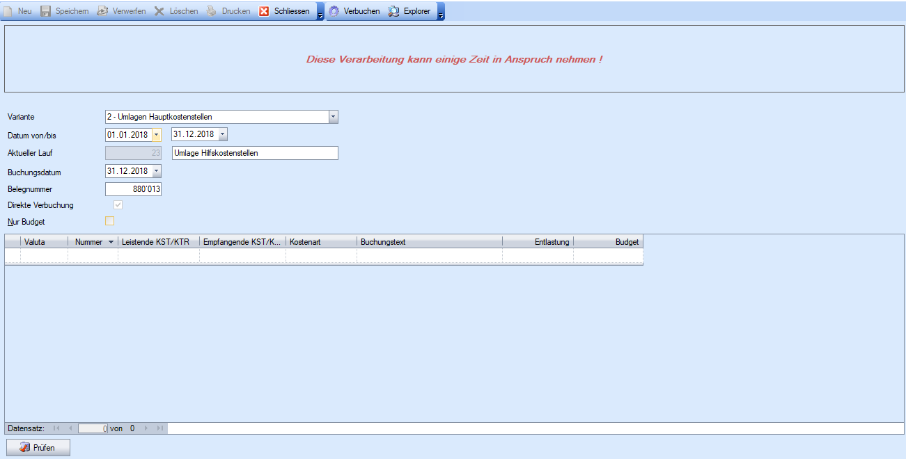 Buchungsdatum | Valutadatum mit der die Kostenbuchungen des aktuellen Laufes gebucht werden. |
