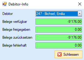 Info | Im Bereich Info werden Informationen zum Stand des Debitoren Rückzahlungslaufes wiedergegeben: |