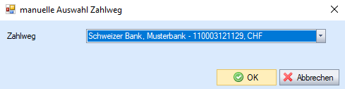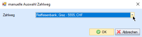 Auswahl Zahlungsweg (Spalte Bank) | Manuelle Auswahl der eigenen Zahlungsverbindung mit der die Rückzahlung getätigt werden soll: | ||||||||||||||||