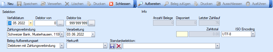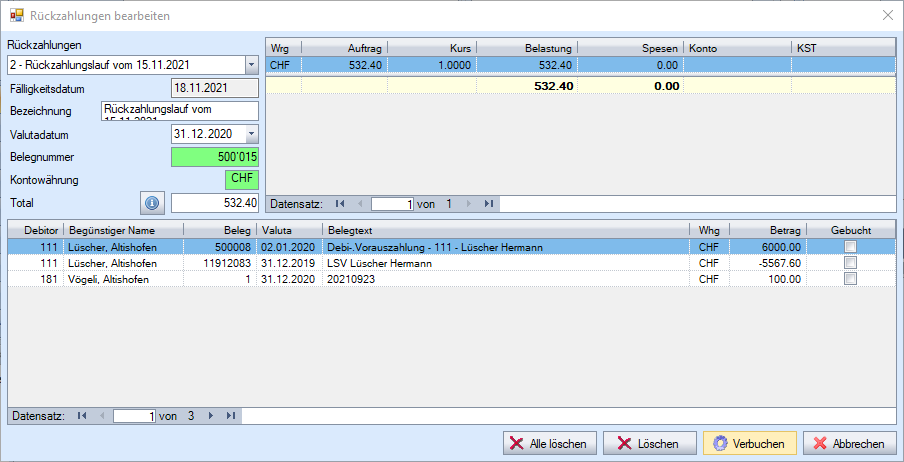 [Laden] | Gespeicherte Debitoren Rückzahlungsläufe zur weiteren Bearbeitung laden | ||||||||||||||||||