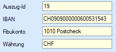 [>] | Mit den beiden Schaltflächen [>] und [<] kann zwischen allen Bankauszügen, die in die Bankauszugsverarbeitung importiert wurden, hin und her geblättert werden. Bei der Anwendung dieser Schaltflächen im Register Positionen gilt als Orientierungspunkt der Auszugzustand. | ||||||||||||||||||||||
