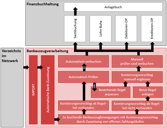 Der elektronische Bankauszug-Import ermöglicht eine systemgestützte Erfassung, Kontierung und Verbuchung der Belastungen und Gutschriften über sämtliche Bankkonten.