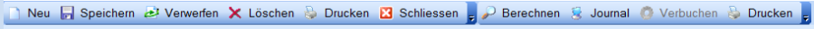 Schaltflächen | Die Schaltflächen wurden in der Buchungserfassung absichtlich im Buchungsfenster platziert (anstelle der Toolbar). Somit wird ein effizienter Erfassungsablauf mit automatischem Cursorfocus erreicht, womit der Anwender die Schaltflächen ohne Mausbenutzung direkt über den Cursorverlauf erreichen kann. | ||||||||||||||||
