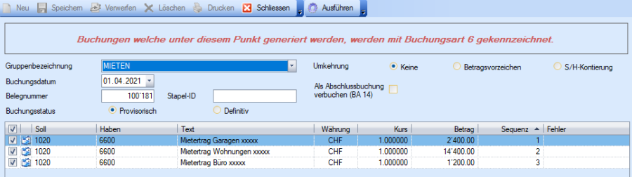 Transitorische Buchungen werden intern mit Buchungsart 7 geführt!