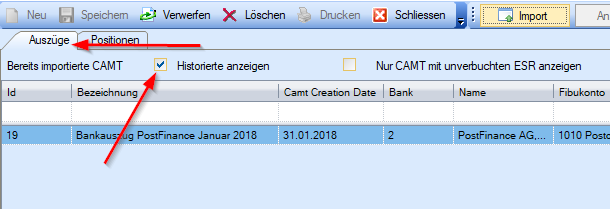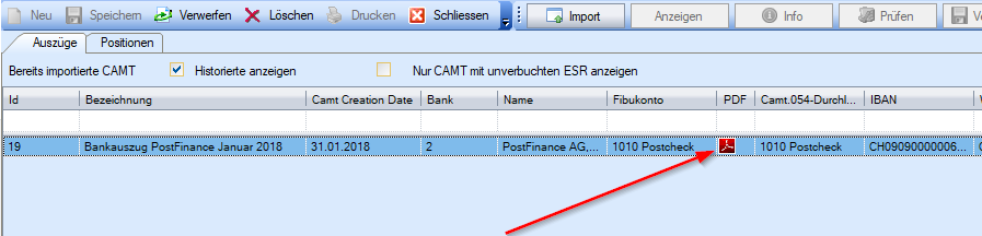 [Löschen] | Aktiv im Register Auszüge: Löschen eines importierten Bankauszugs. | ||||||||||||||||||||||