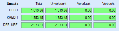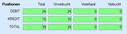 Total/Anzahl | Im Feld Total wird der laufende Saldo aller Buchungen des Stapels angezeigt. Im Feld Anzahl werden die im Stapel enthaltenen Anzahl Buchungen angezeigt. | ||||||||||||||||