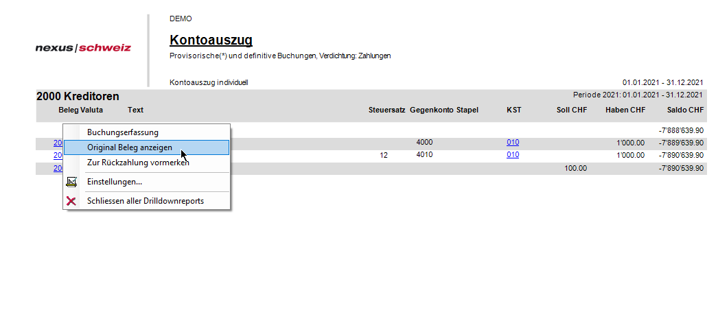 CHF (Betrag Buchwährung) | Buchungsbetrag der Buchwährung | ||||||||||||||||