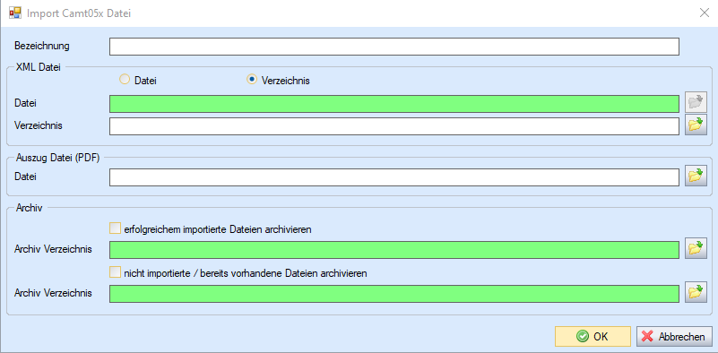 Durch diesen Button wird der Windows Explorer geöffnet. Damit können Dateien in jeglichen Formaten an die aktuell markierte CAMT-Position angehängt werden. | |||||||||||||||||||||||||||||||||||||