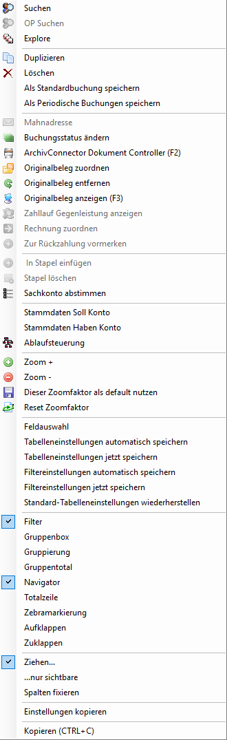 Buchungserfassung Sachbuchungen – Grid Buchungen - Kontextmenufunktionen
