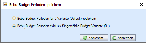 Die Budget-Perioden können entweder nur für die gewählte Budget-Variante oder als Default gespeichert werden.