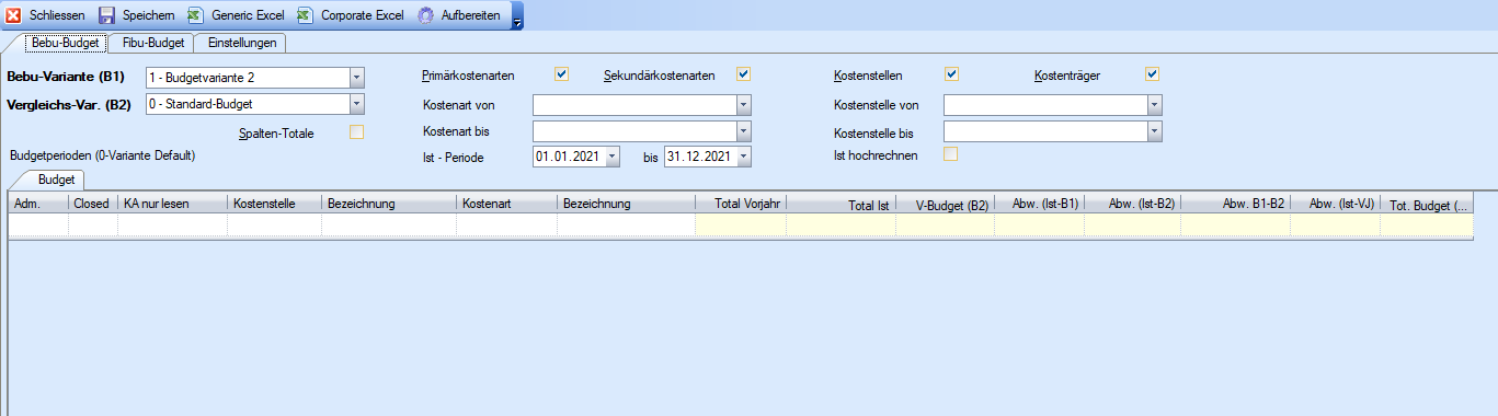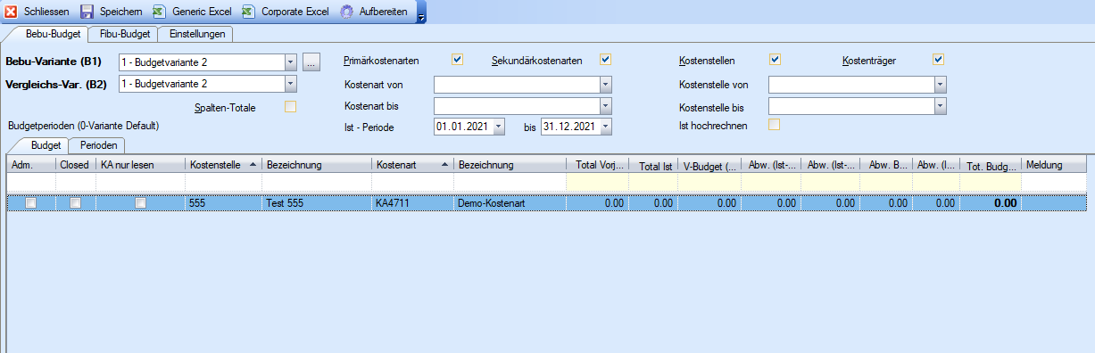 - Prüfen, ob die Daten korrekt übernommen worden sind, Z.B. via Summe im Budget-Grid oder entsprechende Bebu-Auswertungen.