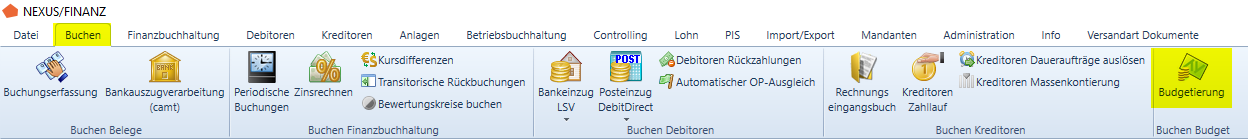 (2) Im Standard-Ribbon-Menü befindet sich der Menü-Punkt für die (erweiterte) Budgetierung an folgendem Ort: