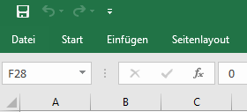 - Im 'Namenfeld' des Excel (i.d.R.) oben links den bekannten Zellbezug, hier 'F28'