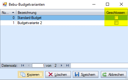 - Diese Abfrage erscheint nicht, wenn die Budgetvariante geschlossen ist: