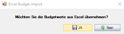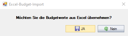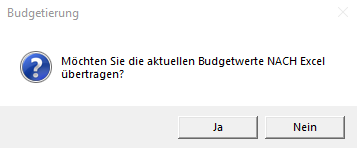 - Der Default steht auf [Ja], in diesem Fall aber [Nein] betätigen. Bei [Ja] würden die Daten im Excel durch die Daten der aktuell gewählten Budgetvariante überschrieben.