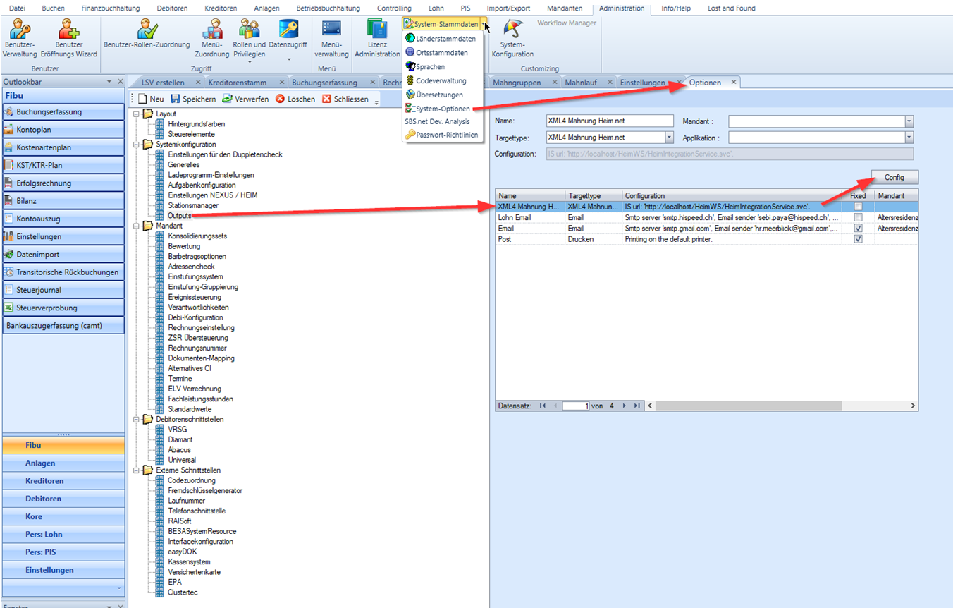 Damit die Mahnungen per Email versendet werden können, müssen folgende Einrichtungsschritte durchlaufen werden: