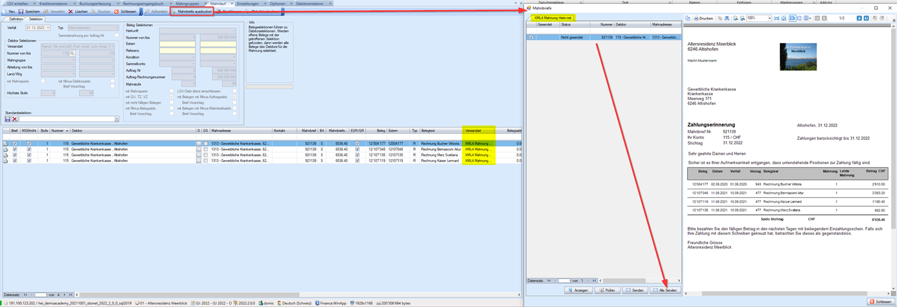 Ist alles eingerichtet, können im Mahnlauf die Mahnungen per XML4 an die Krankenkassen versendet werden: