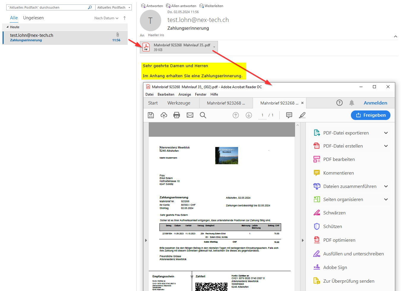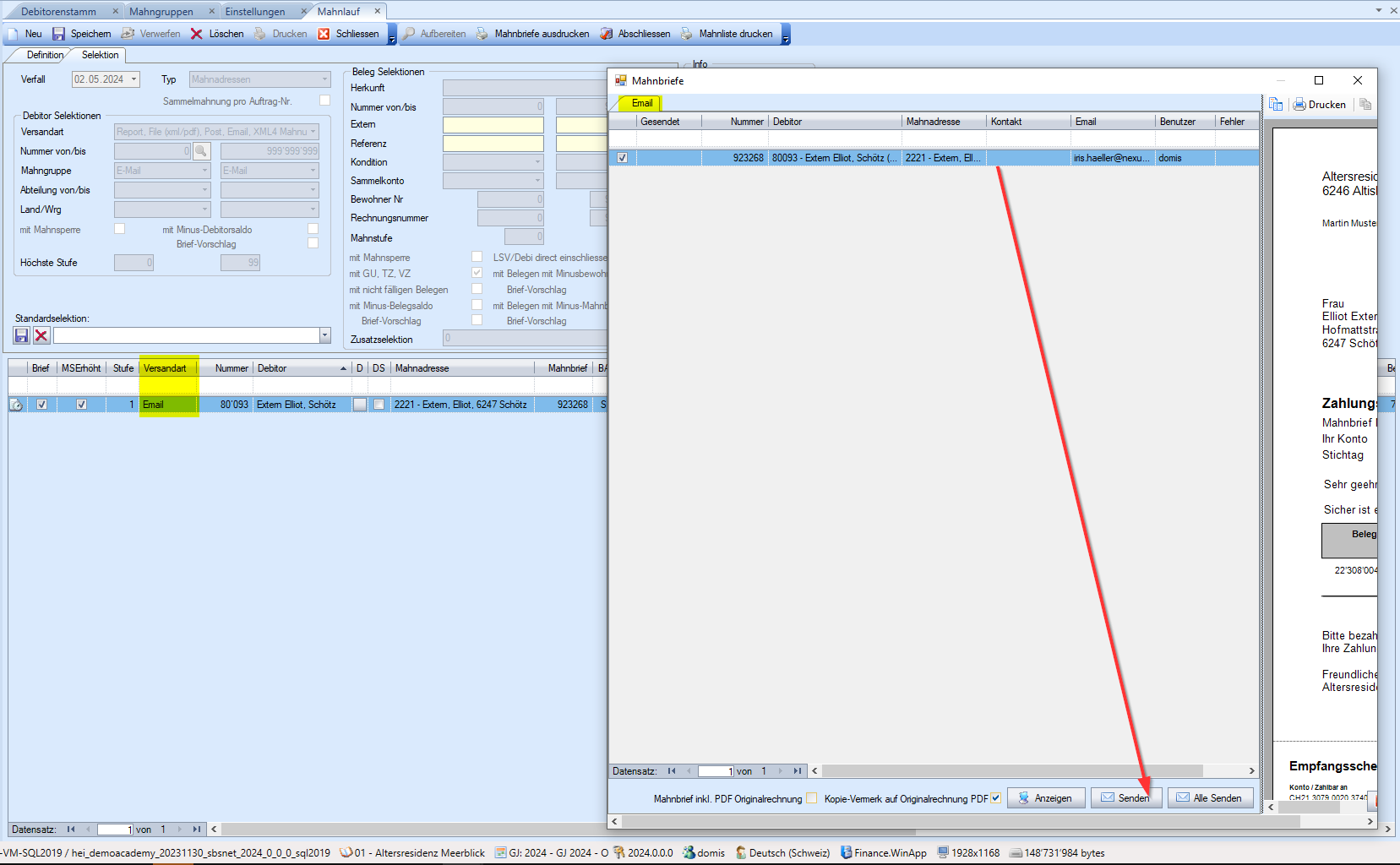 Ist alles eingerichtet, können im Mahnlauf die Mahnungen per Email versendet werden: