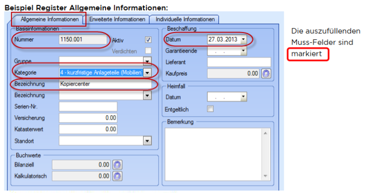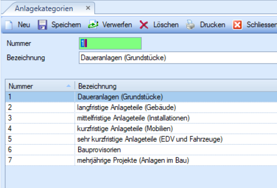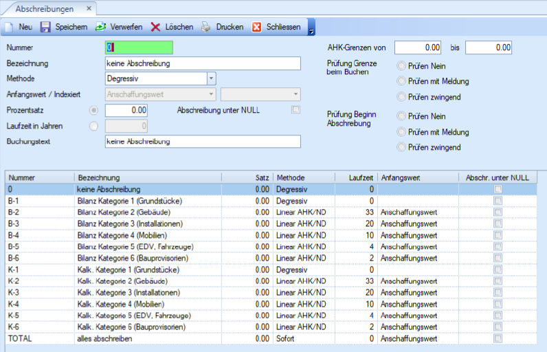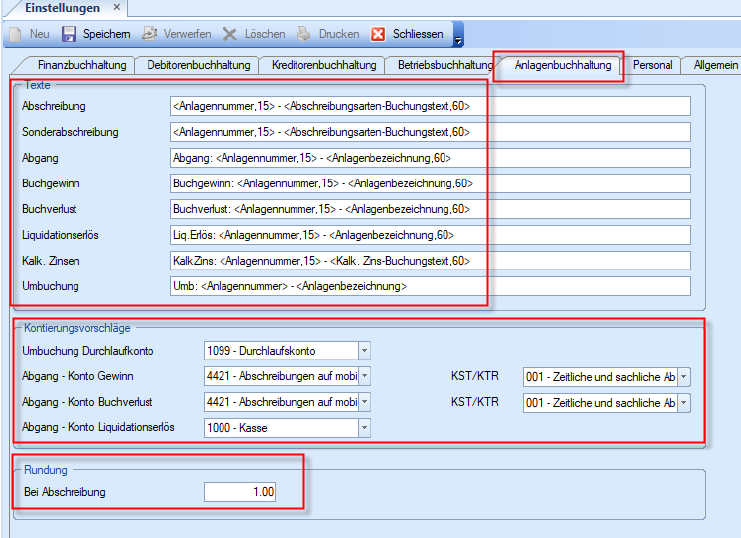 - MenupunktAdministration / System / Extras / Einstellungen / Register Anlagenbuchhaltung