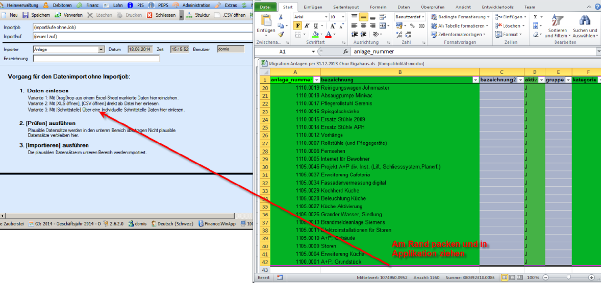 - Anlagengüter können ab Excel-Tabelle importiert werden