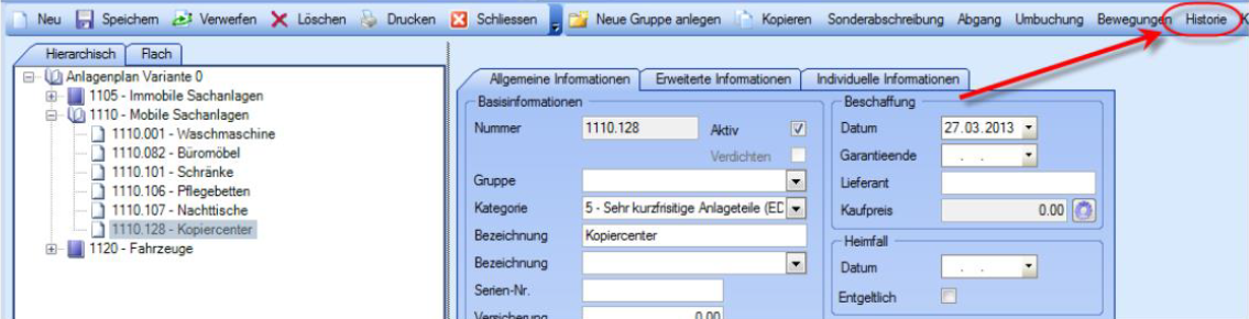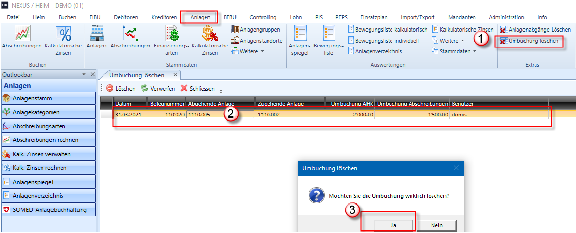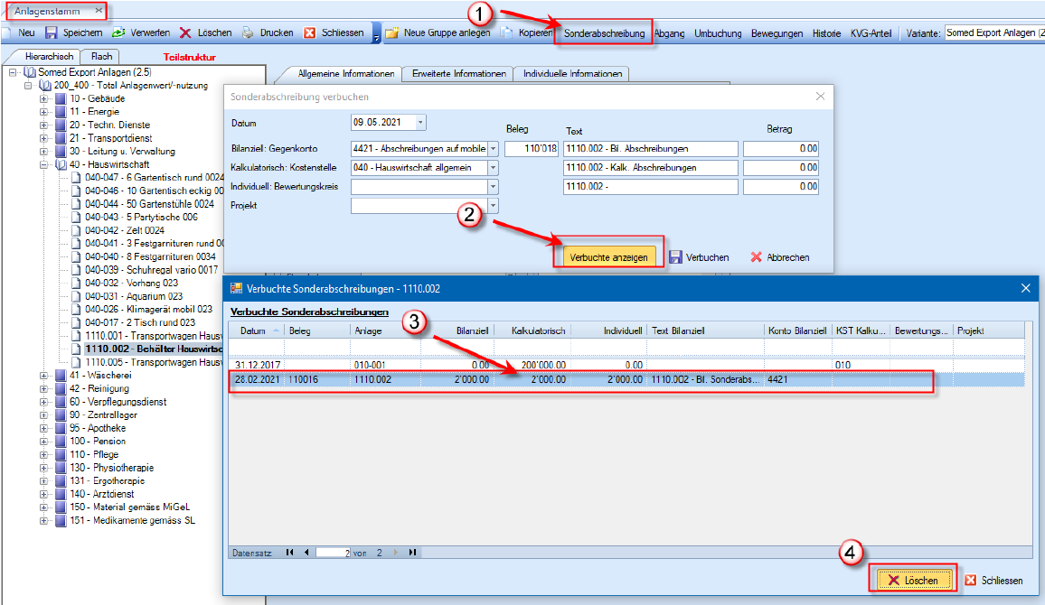 - Bereits erstellte Anlage Umbuchungen können bei Bedarf gelöscht werden