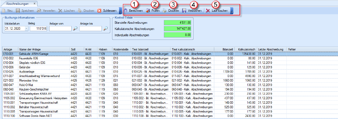 - Mit dieser Funktion werden die bilanziellen und kalkulatorischen Abschreibungen verarbeitet