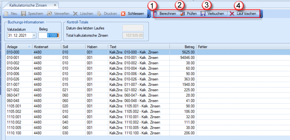 - Mit dieser Funktion werden die kalkulatorischen Zinsen verarbeitet