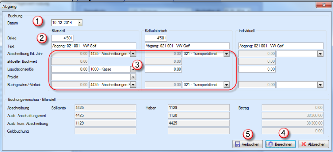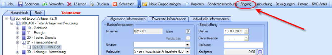 - Mit dieser Funktion können Anlagenabgänge verarbeitet werden