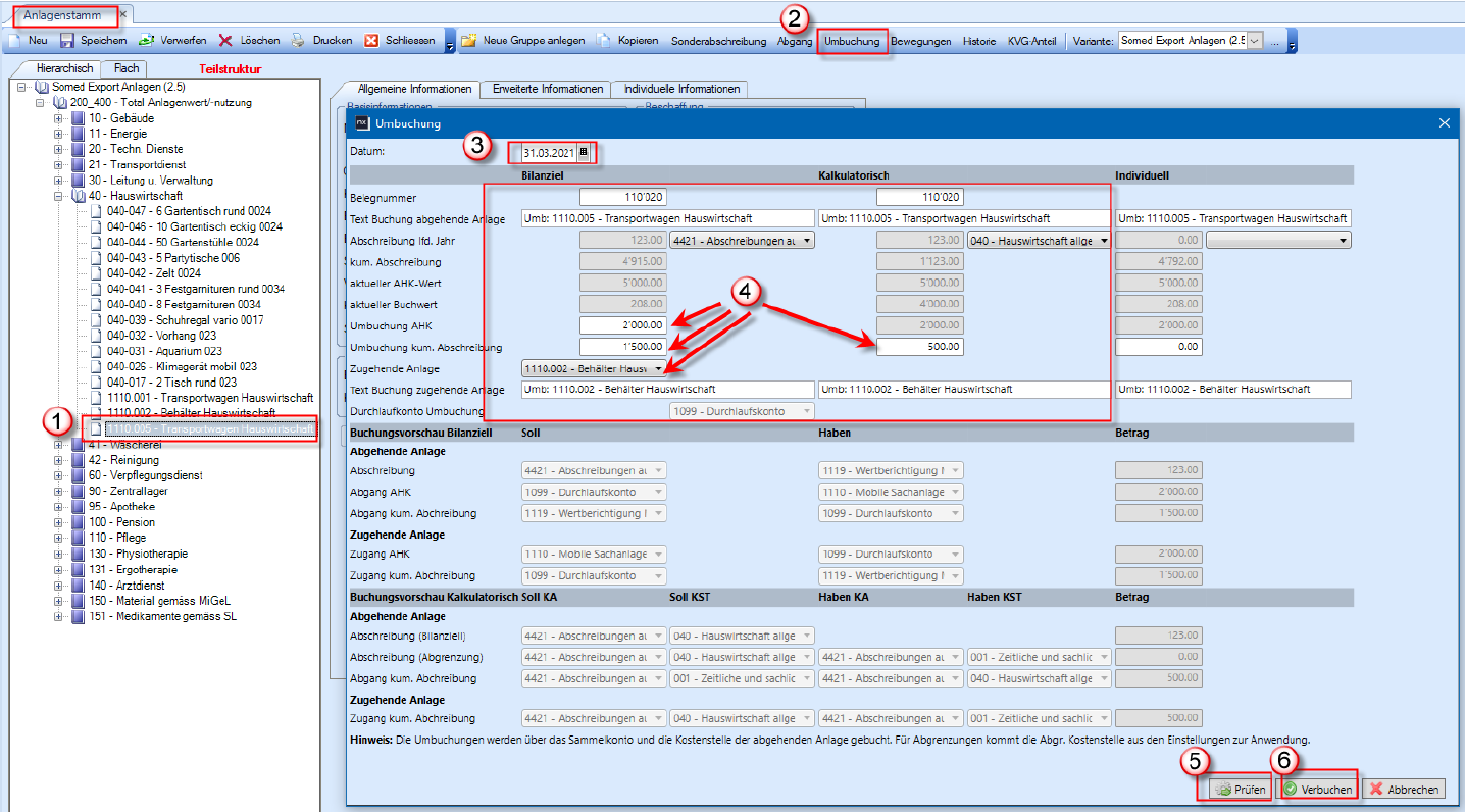 - Mit dieser Funktion können Umbuchungen innerhalb der Anlagenbuchhaltung vorgenommen werden