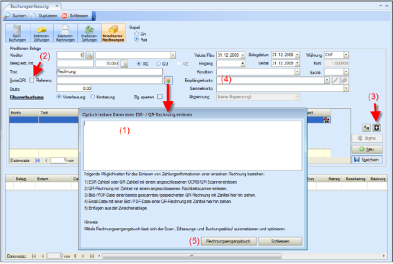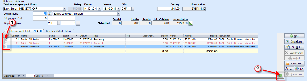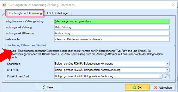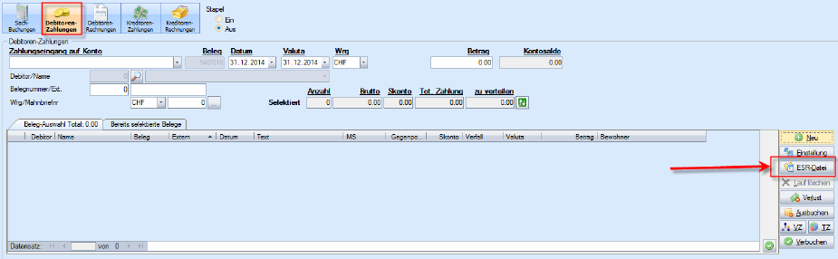 - Das Einlesen der ESR-Zahlungen erfolgt in der Buchungserfassung, Funktion Debitorenzahlungen