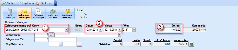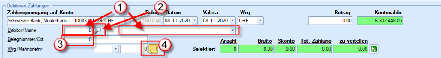 - Die manuellen Debitoren Zahlungen werden in der Buchungserfassung mit der Funktion Debitoren –