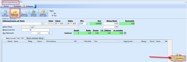 - Menupunkt Buchungserfassung / Debitoren Zahlungen / Einstellung