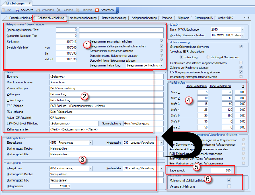 3. Einstellungen Kontierung/Texte Mahngebühren/-zinsen