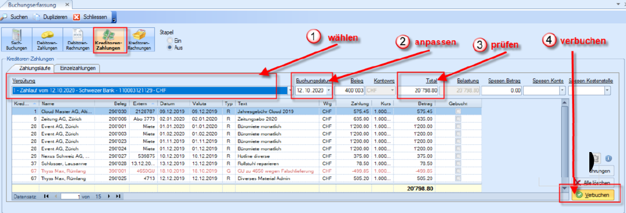 3. Belege zur Zahlung selektieren (Pt. 3.1.4)
