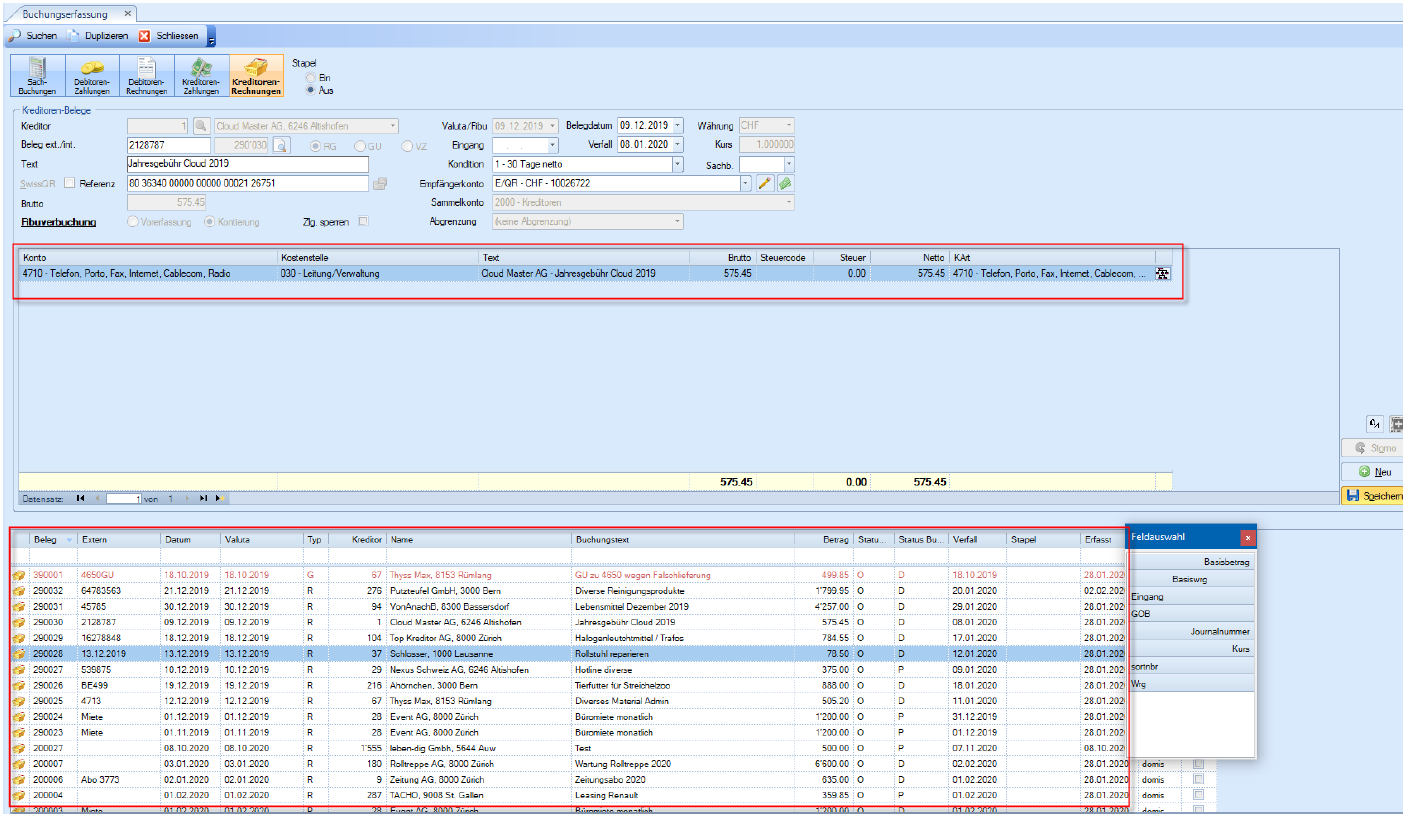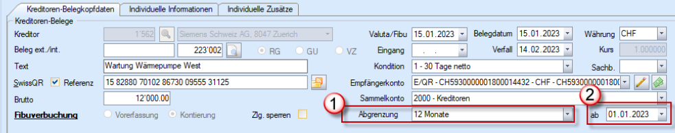 - Mittels dieser Funktionalität können grössere Rechnungen, welche zu Beginn des Geschäftsjahres