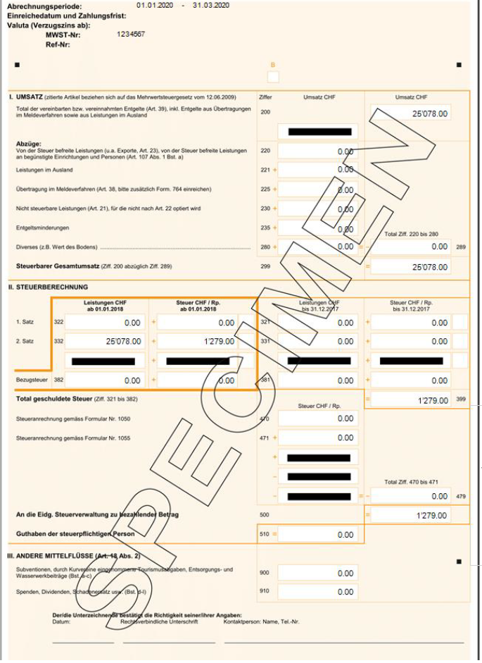 - Wenn mit den Pauschalsteuersätzen gearbeitet wird, kann die MWSt-Abrechnung erstellt werden