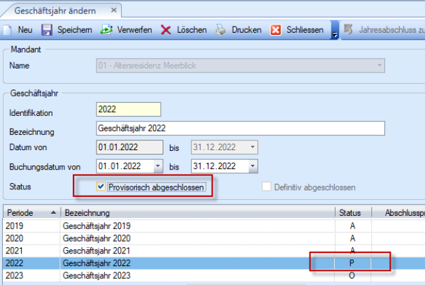 - Abgeschlossene Geschäftsjahre bleiben im System erhalten und können nicht mehr verändert