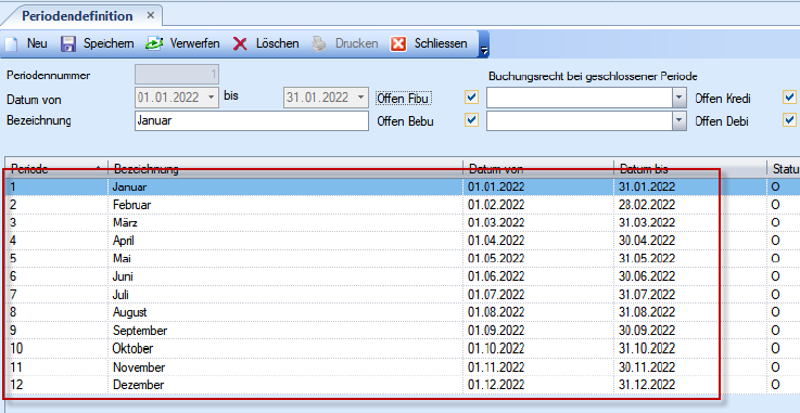 - Und/Oder es können Periodendefinitionen erfasst werden (Monate, Quartale, Halbjahre, etc.)